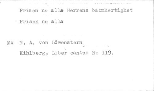 //// Prisen nu alle Herrens barmhertighet Prisen nu alla //// Mk M. A. von Löwenstern //// Kihlberg, Liber cantus No 119. ////