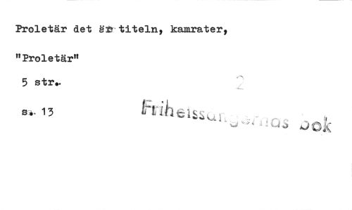 //// Proletär det nYtiteln, kamrater, //// "Proletär" 5 str.. //// s. äok //// 13 ////
