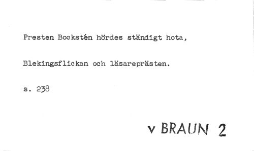//// Presten Bockstån hördes ständigt hota, Blekingsflickan och läsareprästen. s. 238 //// v BRAUN 2 ////
