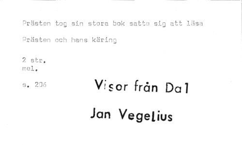 //// Prästen tog sin stora bok satte sig att läsa Prästen och hans käring //// 2 str. mel. //// s. 206 Visor från Dal //// Jan Vegelius ////