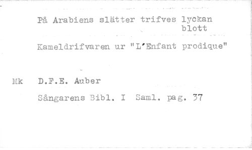//// På Arabiens slätter trifves lyckan //// blott //// Kameldrifvaren ur "L'Enfant prodique" //// Mk D.P.E. Auber //// Sångarens Bibl. 1 Saml. pag. 37 ////