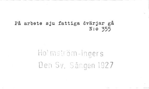 //// På arbete sju fattiga dvärjar gå //// N:o 355 //// Ho' h Jv Cl-i n oers //// Le:Sv. 5 r, g e n "J 927 ////