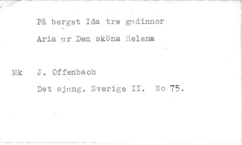 //// På berget Ida tre gudinnor Aria ur Den sköna Helena //// Mk J. Offenbach //// Det sjung. Sverige II. No 75. ////