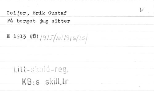 //// Geijer, Erik Gustaf På berget jag sitter //// E 113 Ue)/9/5&/9i4,(f9 //// /