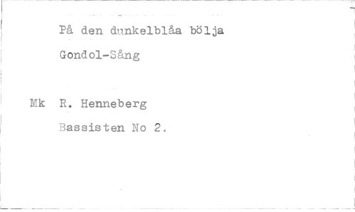 //// På den dnnkelblåa bölja Gondol-Sång //// Mk R. Henneberg Bassisten No 2. ////