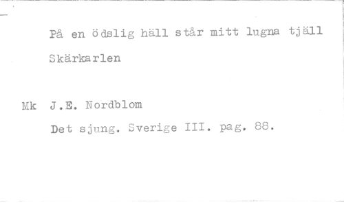 //// På en ödslig häll står mitt lugna tjäll Skärkarlen //// Mk J.E. Nordblom //// Det sjung. Sverige III. pag. 88. ////