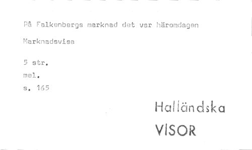 //// På Falkenbergs marknad det var häromdagen Marknadsvisa //// 5 str. mel. //// s. 165 //// Haliändska //// VISOR ////