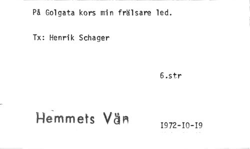 //// På Golgata kors min frälsare led. Tx: Henrik Schager //// 6.str //// Hemmets Väri 1972-10-19 ////
