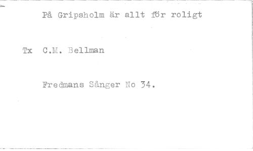 //// På Gripsholm är allt för roligt //// Tx C.M. Bellman //// Fredmans Sånger No 34. ////