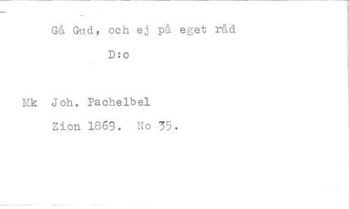 //// Gå Gud, och ej på eget råd D:o //// Mk Joh. Pachelbel non 1869. No 35. ////