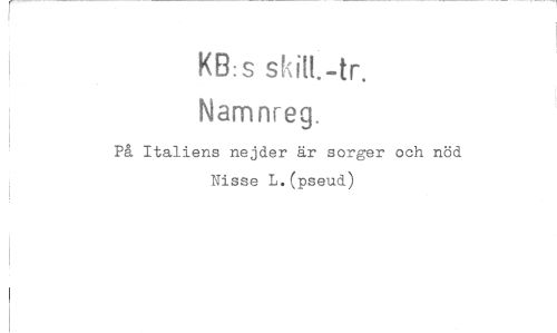 //// KB: s skäl-tr. //// Namnreg. //// På Italiens nejder är sorger och nöd Nisse L.(pseud) ////