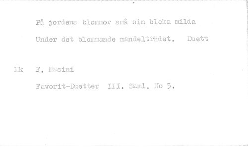 //// På jordens blommor små sin bleke, milda Under det blommande mandeltr5det. Duett //// Lk F. Lasini //// Favorit-Duetter III. Saml, No 5. ////