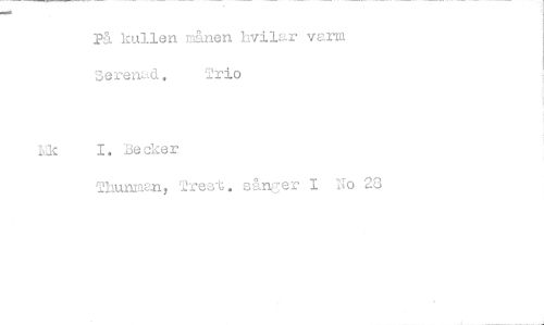//// På kullen månen hvilar varm //// Serend. Trio //// kk I. Becker //// Thuniaan, Trest. sån?er I No 28 ////