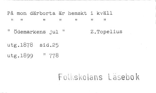 //// På mon därborta är hemskt i kväll //// rr rr ff ft ft //// " ödemarkens jul " Z.Topelius //// utg.1878 sid.25 //// utg.1899 " 778 //// Foiwskoians Lasebo k ////