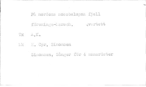 //// På nordens mossbelupna fjell //// förenings-Larsch, 1.rarte1t, //// Tx A.K. //// Lk K. Cpr. Simonsen //// Simonsen, Sånger för 4 mansröster ////