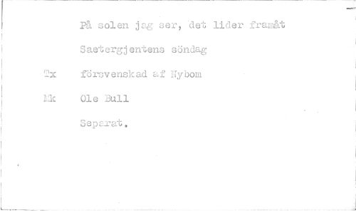 //// På solen jag ser, det lider framåt Saetergjentens söndag försvenskad af Nybom Ole Bull ////