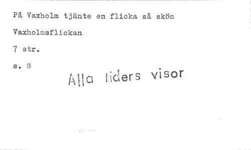 //// På Vaxholm tjänte en flicka så skön Vaxholmsflickan //// 7 str. //// 5. 8 Alia tiders visor ////