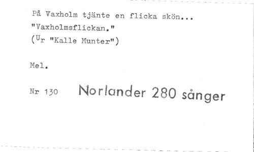 //// På Vaxholm tjänte en flicka skön... "Vaxholmsflickan." (Ur "Kalle Munter") //// Mel. //// Nr 130 Norlander 280 sånger ////