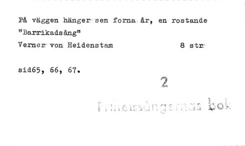 //// På väggen hänger sen forna-år, en rostande "Barrikadsängn //// Verner von Heidenstam 8 str //// sid65, 66, 67. ////