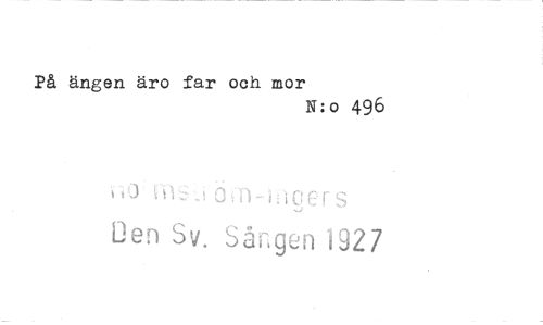 //// På ängen äro far och mor //// N: o 496 //// Den Sv. Sången 1927 ////