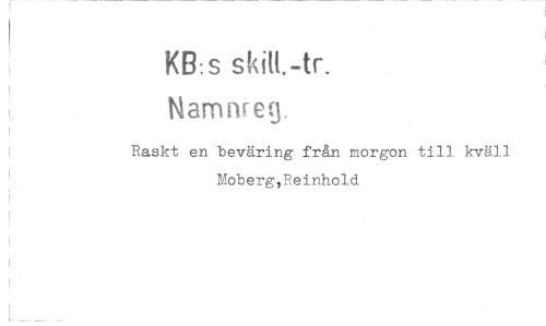 //// KB:s skal-tr. //// Namnreg. //// Raskt en beväring från morgon till kväll Moberg,Reinhold ////
