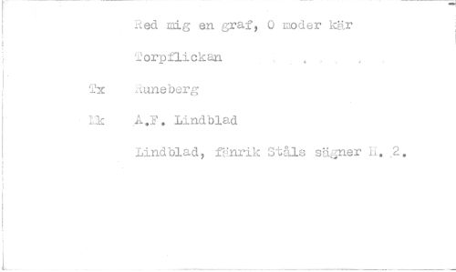 //// Red mig en graf, 0 moder kär //// 2orpflickan //// Auneberg //// 4.F. Lindblad //// Lindblad, fänrik Ståls sägner h. 2. ////
