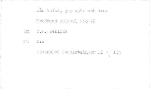 //// An kalady ja spår och tror //// Fredmans epistel N:o 42 //// (3.1L. Bellman //// Lk D:o //// hedenblad 3tudentsånger II 4- 13 ////