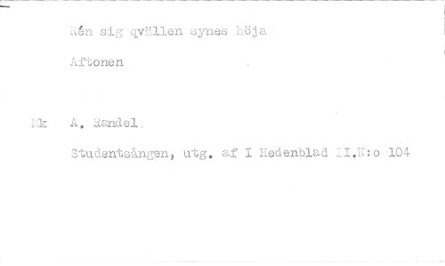 //// Än sig qvällen synes höja Aftonen //// Lk A a.nde1, //// Studentsången, utg. af I Hedenblad II.N:o 104 ////