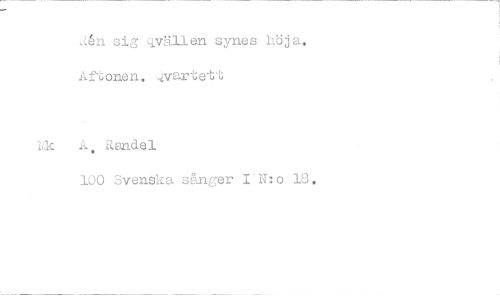 //// Aån sig civällen synes höja. A.'"tonen. 4v•artet1 //// ink A, Randel //// 100 Svenska sånger I'N:o 18. ////