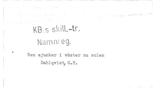 //// KB s //// hiamnt eg. //// Ren sjunker i väster nu solen Dahlqvist/G.H. ////