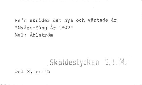 //// Re'n skrider det nya och väntade år "Nyårs-Sång År 1802" Mel: Åhlström //// SkaidestyckGn 3J. M, //// Del X, nr 15 ////