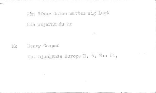 //// i-t6n öfver dalen natten sig lagt Lm .tjerna du dr //// Lenry Cooper //// Det sjunbande 2,uropa Ii. 6. N:o 51. ////