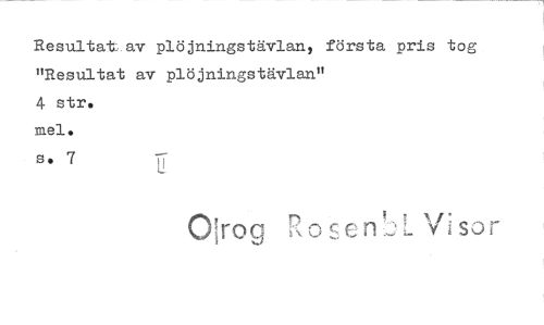 //// Resultat, av plöjnings tävlan , första pris tog //// "Resultat av plöjnings tävlan" //// 4 s tr. //// mel. //// 5. 7 //// 0!rog C's \f sor ////