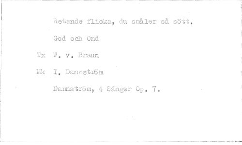 //// Retande flicka, du småler så sött, //// God och Ond //// Tx W. v. Braun //// Vik I. DannstItm //// Dannströmy 4 Sånger Op. 7. ////