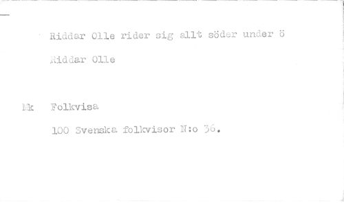 //// Riddar 011e rider sig allt söder under ö Aiddar 011e //// Lk Folkvisa //// 100 Svenska folkvisor N:o 30. ////