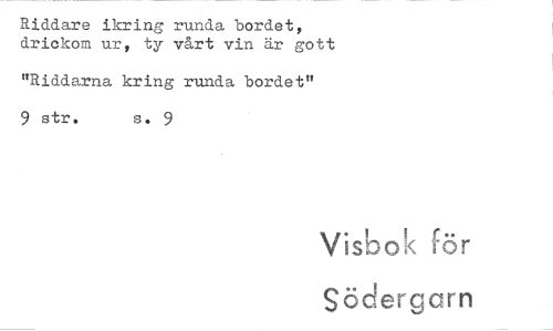 //// Riddare ikring runda bordet, driokom ur, ty vårt vin är gott //// "Riddarna kring runda bordet" //// 9 str. s. 9 //// Visbok för //// Södercern ////
