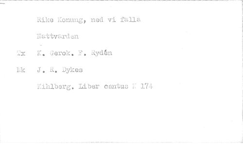 //// Rike Konung, ned vi falla //// Uattvarden //// K. Je k, F. äyd6n //// kk J. Dykes //// gihlberg. Liber cantus 2 174 ////