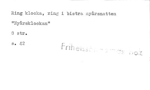//// Ring klocka, ring i bistra nyårsnatten "Nyårsklockan" //// 3 str. s. 42 //// frih ////