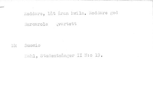 //// Aoddare, låt åran bvila. Roddare god //// 3arcarole vartett //// Lk Suonio //// Kahly Studentsånger II no 19. ////