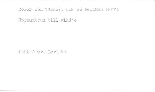 //// Rosor och tärnor, ack se hvilken skara Uppmuntran till glädje //// I')hbmårer, Lyriska ////
