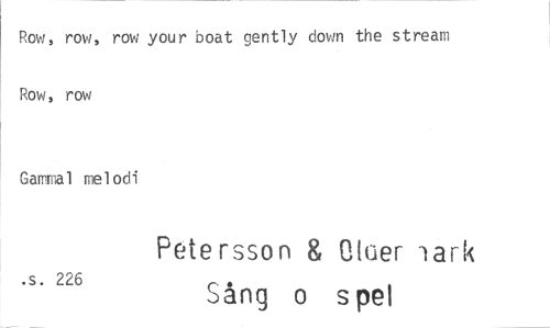 //// Row, row, row your hoat gently down the stream Row, row //// Gammal melodi //// Petersson & Cider iark //// .s. 226 Sång o spel ////