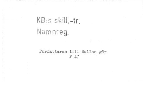 //// KB:s skitt.-tr. //// Namnreg. //// Författaren till Rullan går //// P 47 ////