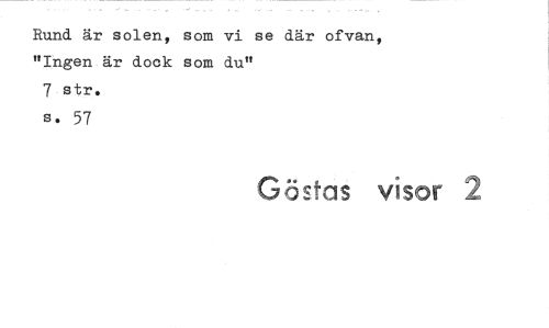 //// Rund är solen, som vi se där ofvan, "Ingen är dock som du" //// 7 str. s. 57 //// Göstas visor 2 ////