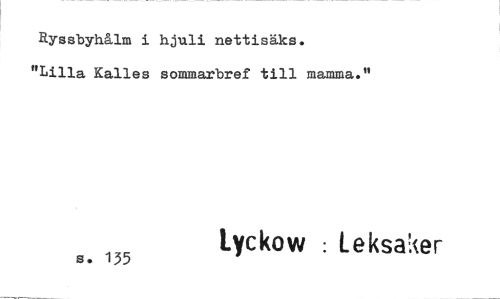 //// Ryssbyhålm i hjuli nettisäks. //// "Lilla Kalles sommarbref till mamma." //// s. 135 lyckow : Leksaker ////