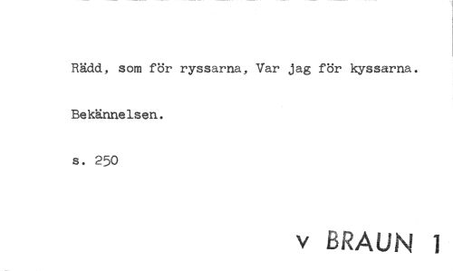 //// Rädd, som för ryssarna, Var jag för kyssarna. Bekännelsen. //// s. 250 //// v BRAUN 1 ////