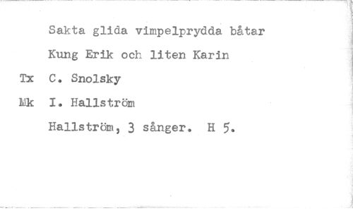 //// Sakta glida vimpelprydda båtar //// Kung Erik och liten Karin //// Tx C. Snolsky //// kk I. Hallström //// Hallström, 3 sånger. H 5. ////