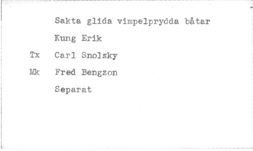 //// Sakta glida virnpelprydda båtar //// Kung Erik //// Tx Carl Snolsky //// Mk Fred Bengzon //// Separat ////
