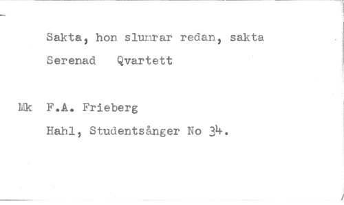 //// Sakta, hon slumrar redan, sakta Serenad Qvartett //// Mk F.A. Frieberg //// Hahl, Studentsånger No 34. ////
