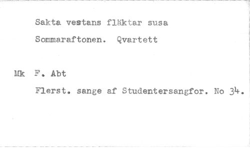 //// Sakta vestans fläktar susa Sommaraftonen. Qvar•tett //// lik F. Abt //// Flerst. sangs af Studentersangfor. No 34. ////