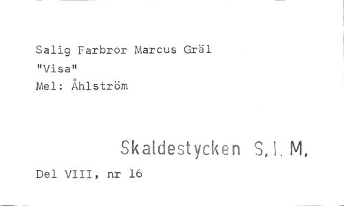 //// Salig Farbror Marcus Gräl "Visa" //// Mel: Åhlström //// Skaldestycken S, I. M, //// Del VIII, nr 16 ////